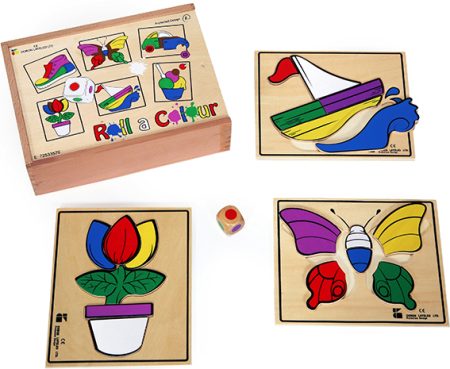 הרכב צבעים בקופסת עץ מכיל 6 פאזלים מעץ