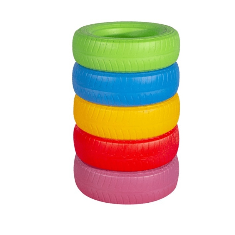 סט חמישה גלגלים צבעוניים (צמיגים) לפנים וחוץ גן הילדים / מעון. פעילות משחק חוויתית לילדים ולפעוטות לגלגל , לרכב, לזחול , לבנות , להסתתר ועוד אפשרויות כיד הדמיון.